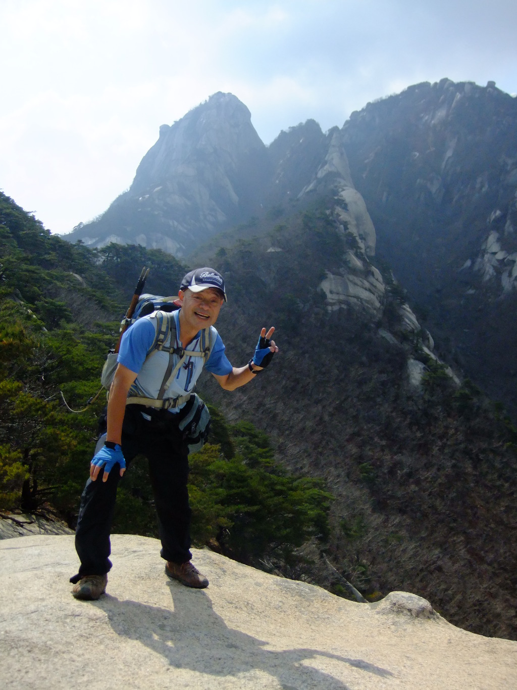 From the bottom of the valley, we had to climb again the steep rocky place, and the last part of the trail was well facilitated stairs. I climbed the last part with Tobbie, and the rest of the members were waiting for us on the rock from which we could see InSuBong, a steep rocky mountain.