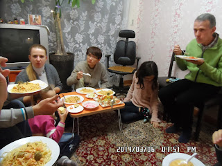 We also enjoyed the red soup which Marta made. She used a special vegetable to make the soup. I guess it must be Ukraine style soup.